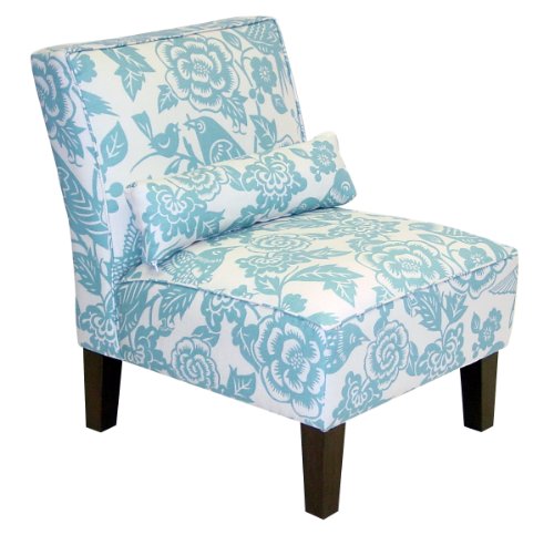 This stylish aviary-inspired armless chair is an eye-catching addition to your home It is perfect for apartments and small spaces or for an added splash of color in your living room It comes with a matching pillow for lumbar support Easy assembly required Handmade in america 100-percent cotton